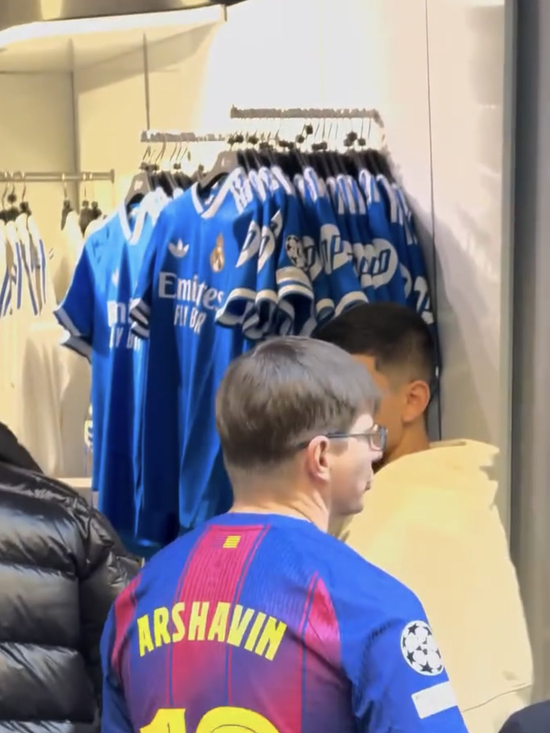 بمناسبة الكلاسيكو في عطلة نهاية الأسبوع الماضي، ظهر الروسي مجددًا وهو يدخل متجر ريال مدريد مرتديًا قميص برشلونة لموسم الحالي ويحمل اسمه على الظهر.